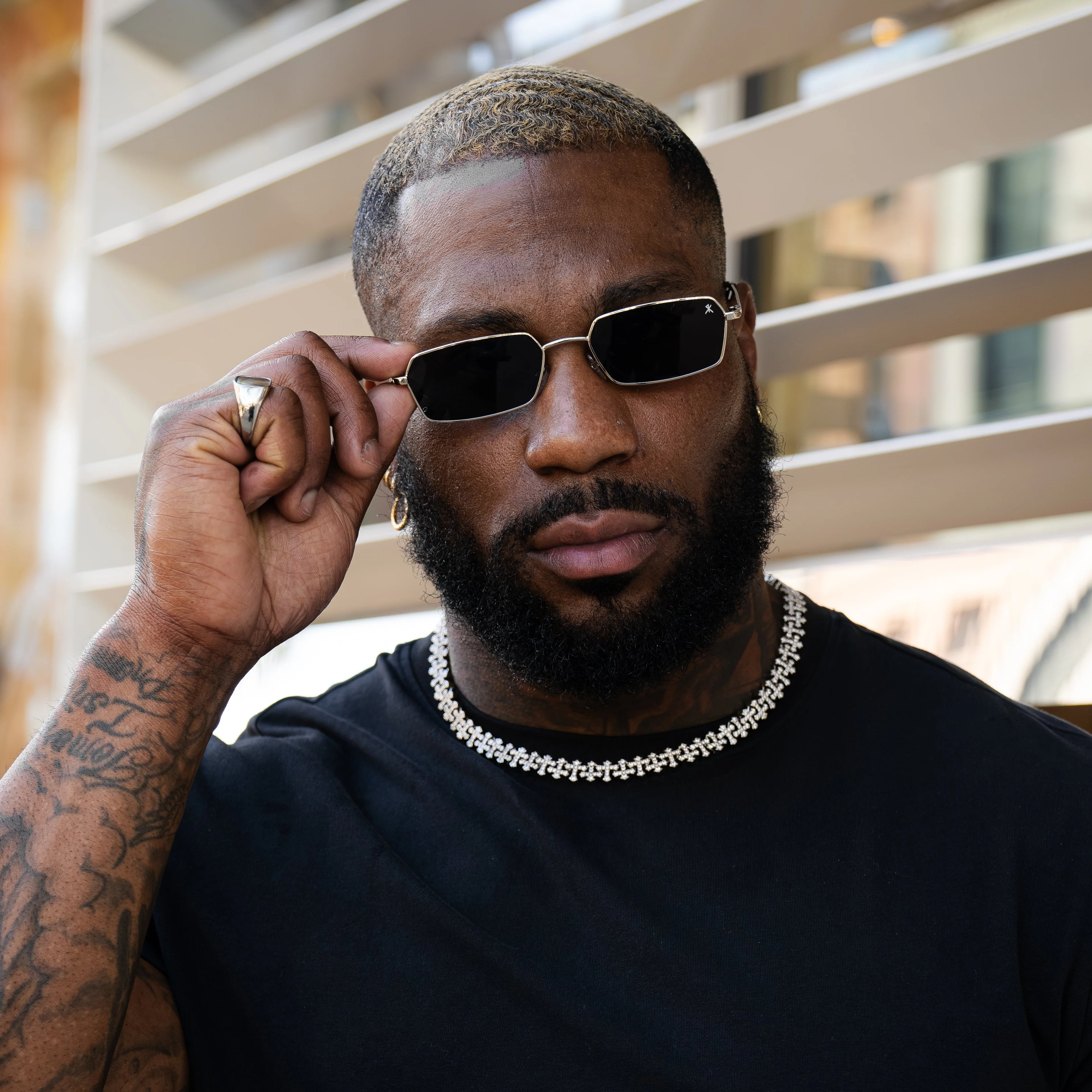 In collaboration with Carlos Belcast, this refined statement piece is born from the RGMNT × Ragnarok partnership. Featuring a sleek metal frame, structured silhouette, and tinted lenses, these sunglasses blend modern design with a timeless edge. Designed for everyday wear or elevated looks, they offer bold style and all day comfort no matter the colorway.