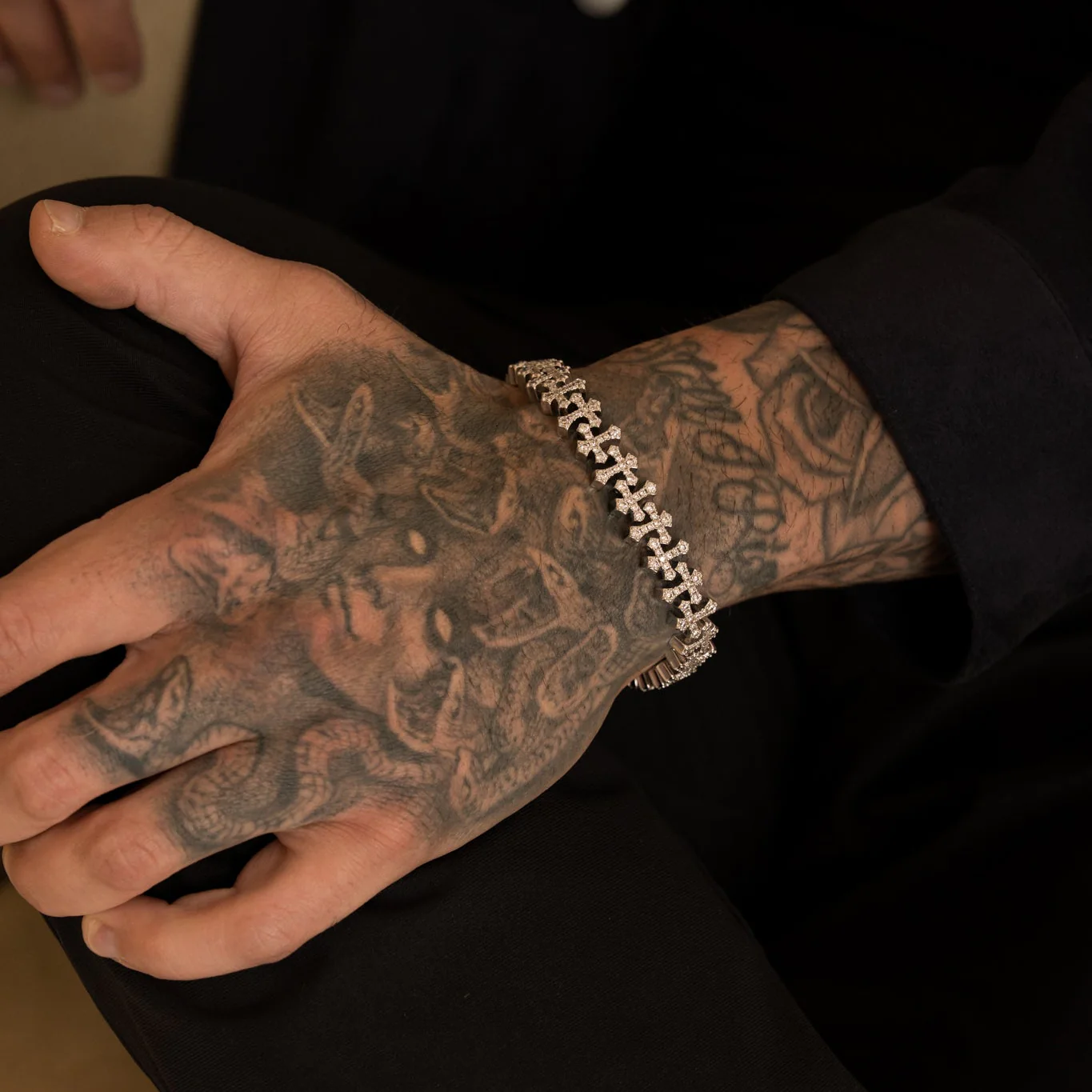 Not your average sinner. The Iced Cross Link Bracelet in Silver brings faith and fashion together in a bold, unapologetic way. Every cross link is individually hand set with stones, creating nonstop shine that catches from every angle. A flawless finish that represents loyalty, strength, and elevated style all in one powerful piece.